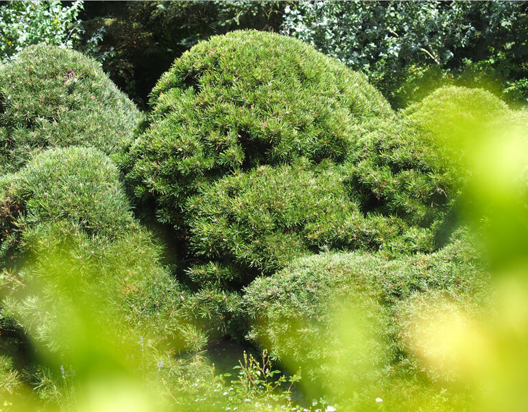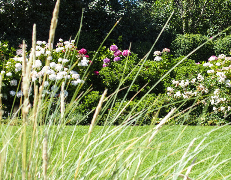 Nach der ersten 3er-Reihe, die dem alten Garten an dieser Stelle bereits ein ganz anderes, moderneres Gesicht gab, wurden in den Folgejahren nach und nach erst eine, dann zwei und zum Schluss drei weitere, nahezu identische Gruppen im Karree gesetzt, um das neue Bild auf den ganzen Garten zu übertragen. Bereits vorhandene Pflanzungen aus dem alten Garten konnten entweder umgesetzt, ergänzt oder aber unverändert in das neue