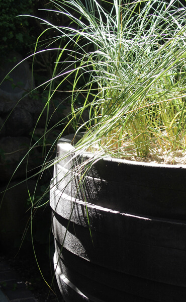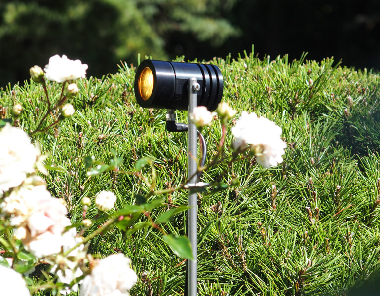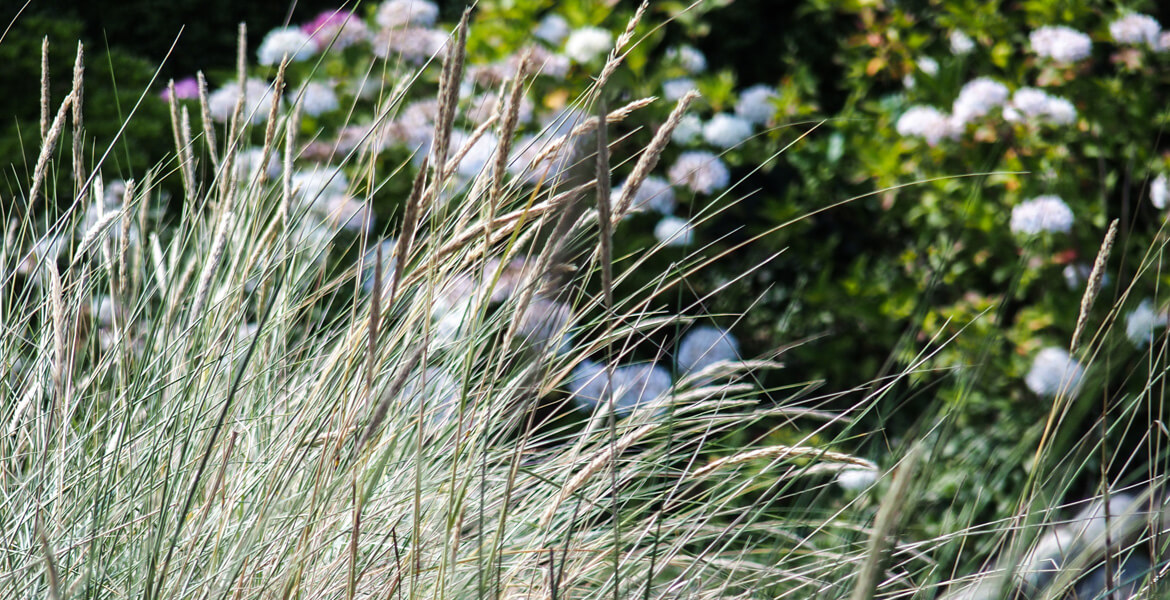 Die Gräserfelder aus Strandhafer vermitteln eine Art maritimer Dünen-Atmosphäre. Eine spezielle Bodenvorbereitung und etwas Geduld ist jedoch unverzichtbar, um diese im Garten eigentlich ortsfremden Pflanzen zu kultivieren. Mit der fein abgestimmten Auswahl von Leuchten, warmen LED-Lichtfarben und Filtern durch die Firma smartcomplete ist