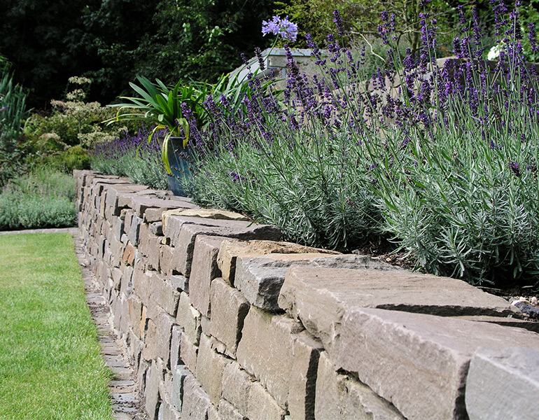 hinweg auf die Bodenplatte im Garten vollzog sich dagegen innerhalb von wenigen Minuten. Durch Anlage von weiteren Naturstein-Stützmauern, Stufen und Wegen konnte die Nutzbarkeit des Grundstücks deutlich erhöht und aufgewertet werden. Die pflanzliche Überarbeitung des alten Gartens gab der Umgestaltung einen dem neuen Charakter angemessenen Rahmen.