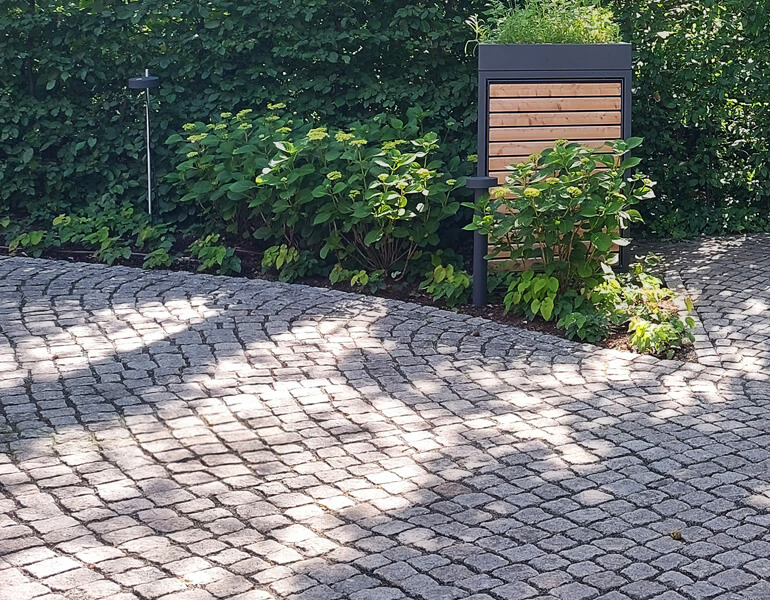 Im Zuge der Gartengestaltung wurden neben den übrigen Gartenflächen auch die Zufahrt und der Hauseingang neu geplant und optimiert.